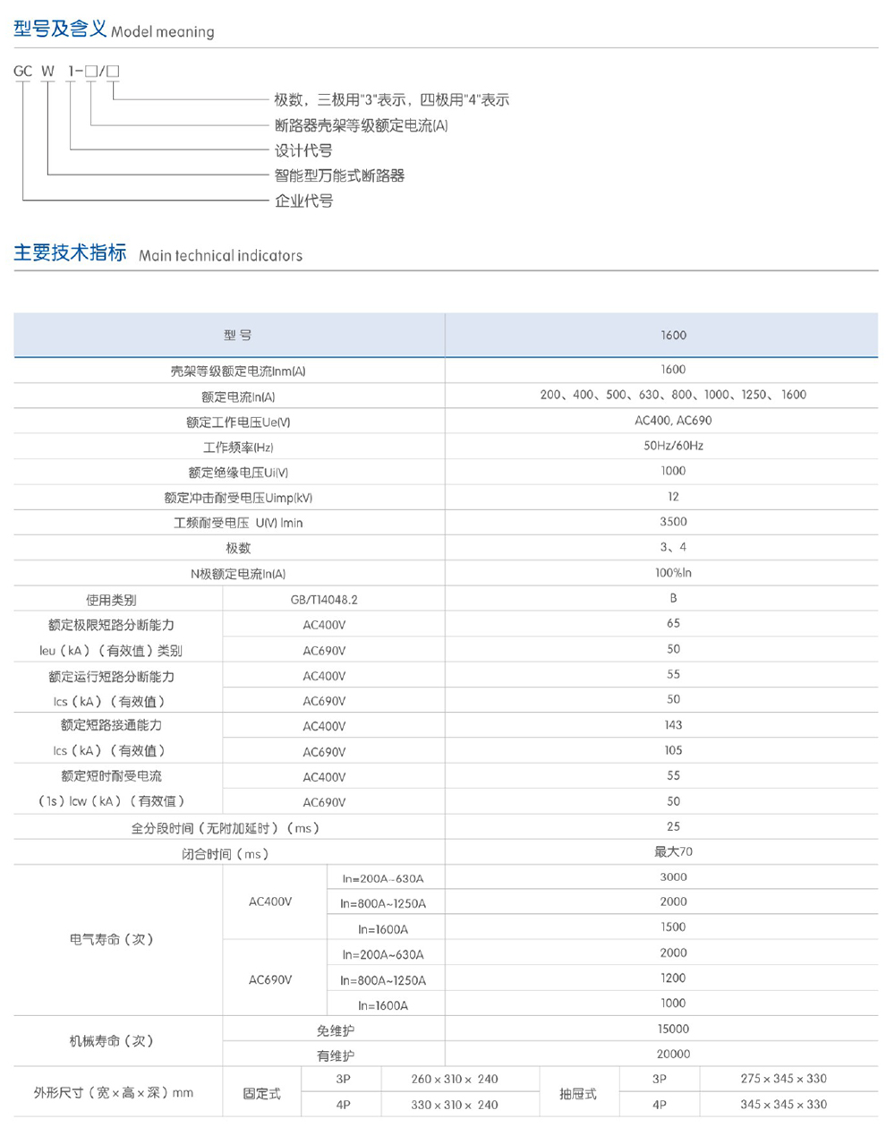 GCW1-1600系列智能型萬能式斷路器