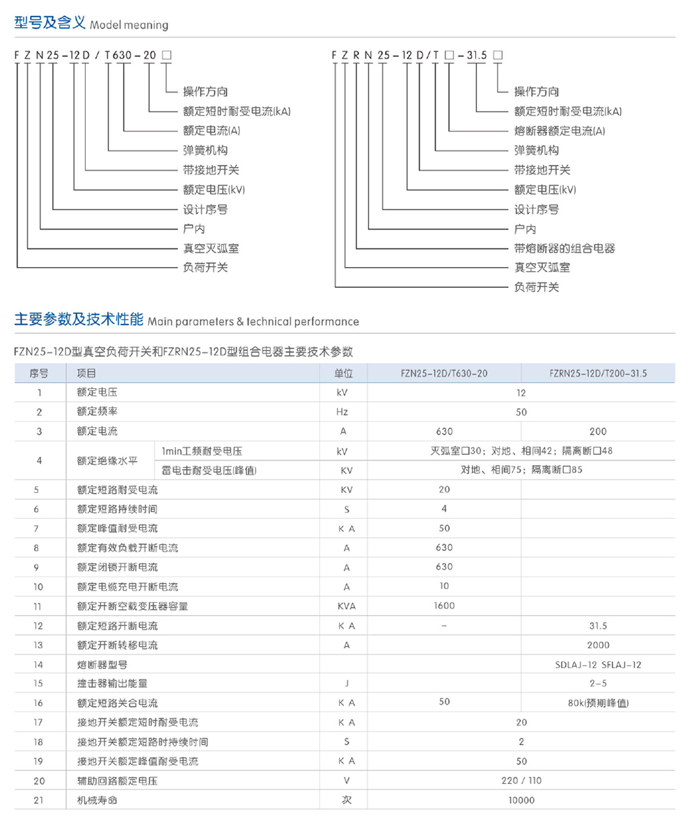 配裝具有關(guān)合短路電流能力的接地開(kāi)關(guān)。操作機(jī)構(gòu)可手動(dòng)和電動(dòng)。便于實(shí)現(xiàn)電力系統(tǒng)的三理控要求。FZRN25-12D/T200-31.5型戶內(nèi)交流高壓真空負(fù)荷開(kāi)關(guān)熔斷器組合電器是三相交流50Hz、額定電壓12kv的戶內(nèi)裝置,適用于工礦企業(yè)、配電所及變電站等場(chǎng)合,作負(fù)荷控制和短路保護(hù)之用。